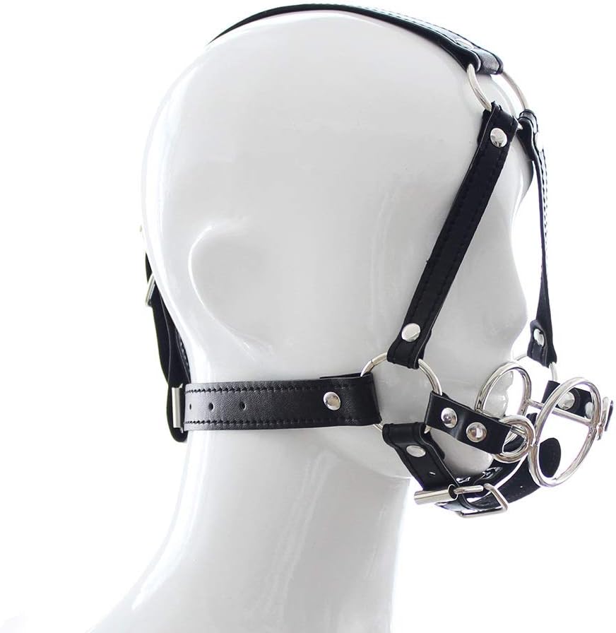 Fun Supplies Mouth Ball Double Ring Harness Mouth Plug Adult Supplies Mouth Ball Bondage Sexy PU Leather