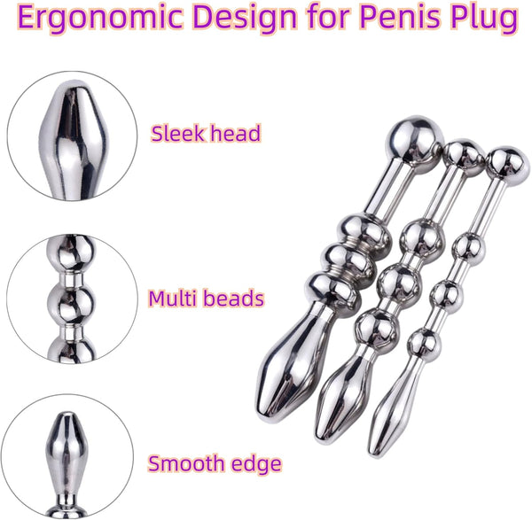 Urethral Sound, 3 PCS Stainless Steel Urethral Dilators with Multi Beads Penis Plug Catheter Sounds Sex Toy Masturbation Rod Bladder Stimulation for Men