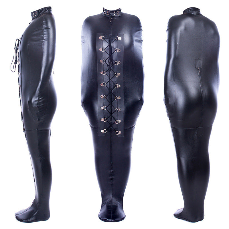 This fun, kinky mummy bodysuit is a professional sex training SM bed toy perfect for BDSM beginners or fetish enthusiasts.